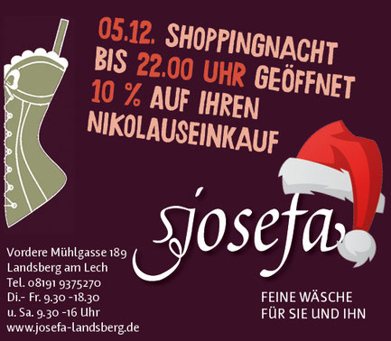 Viel Spass beim Stöbern durch Josefa's Welt der Dessous. Gerne begrüßen wir Sie persönlich bei uns im schönen Landsberg am Lech.